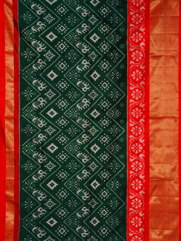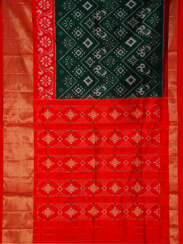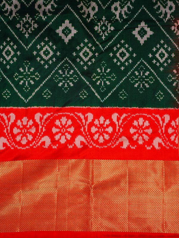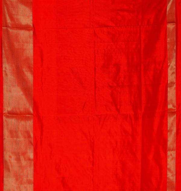 This black and red handloom Pochampally silk Ikat saree from Telangana has beautiful patterns made using a traditional dyeing method. Pochampally Ikat is a very old weaving style where the threads are dyed before weaving, which creates unique designs. The soft mulberry silk fabric gives the saree a nice, smooth fall. The bright colours and geometric patterns make it stand out. This saree is a great choice for special occasions and for anyone who loves real, traditional Indian handloom.