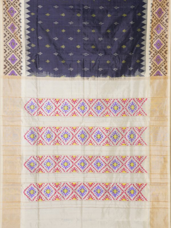 This magenta white handloom Pochampally silk border Ikat saree from Telangana has beautiful patterns made using a traditional dyeing method. Pochampally Ikat is a very old weaving style where the threads are dyed before weaving, which creates unique designs. The soft mulberry silk fabric gives the saree a nice, smooth fall. The bright colours and geometric patterns make it stand out. This saree is a great choice for special occasions and for anyone who loves real, traditional Indian handloom.