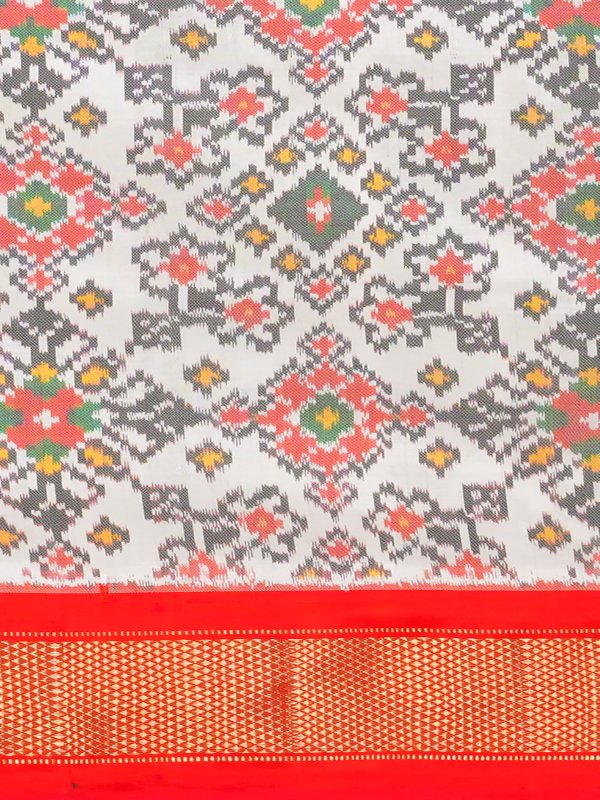 White red handloom patola pochampally ikat silk saree