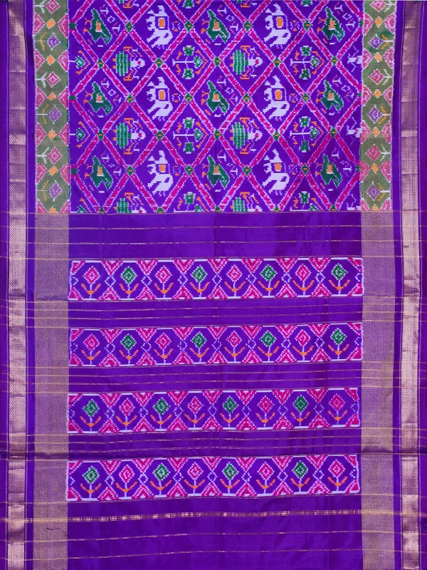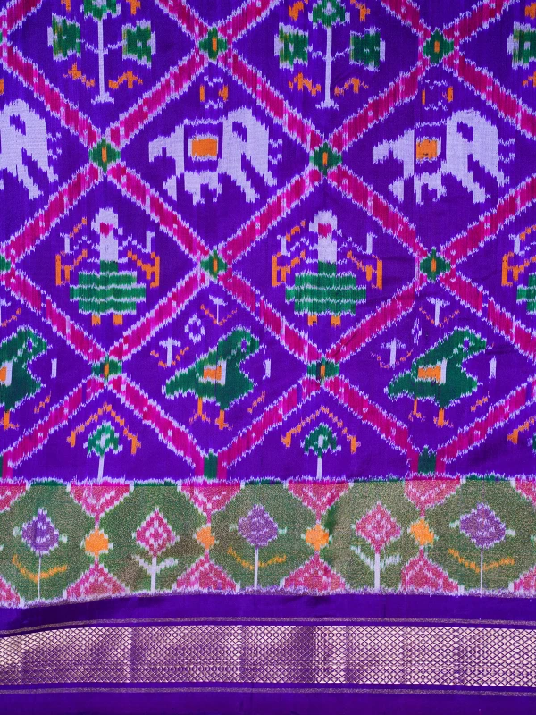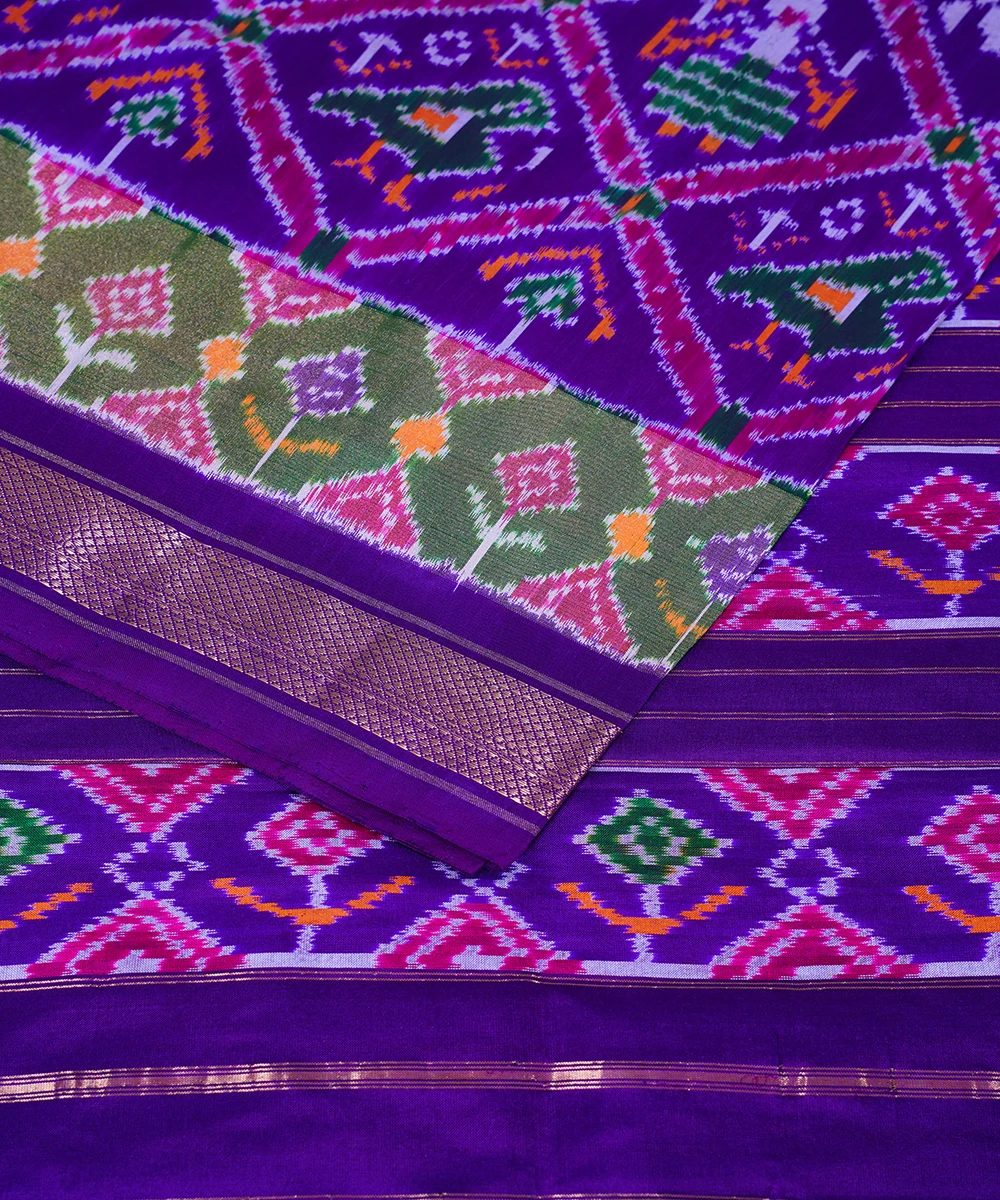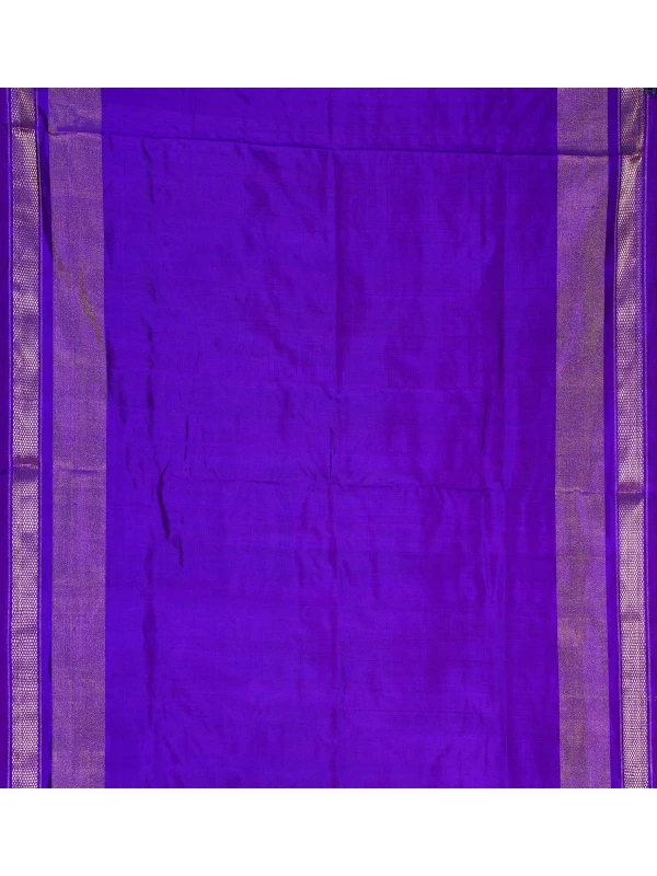 This blue and green handloom Pochampally silk Ikat saree from Telangana has beautiful patterns made using a traditional dyeing method. Pochampally Ikat is a very old weaving style where the threads are dyed before weaving, which creates unique designs. The soft mulberry silk fabric gives the saree a nice, smooth fall. The bright colours and geometric patterns make it stand out. This saree is a great choice for special occasions and for anyone who loves real, traditional Indian handloom.