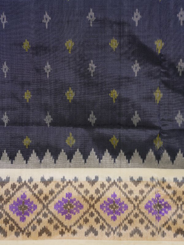 This magenta white handloom Pochampally silk border Ikat saree from Telangana has beautiful patterns made using a traditional dyeing method. Pochampally Ikat is a very old weaving style where the threads are dyed before weaving, which creates unique designs. The soft mulberry silk fabric gives the saree a nice, smooth fall. The bright colours and geometric patterns make it stand out. This saree is a great choice for special occasions and for anyone who loves real, traditional Indian handloom.