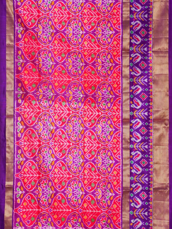 This blue pink handloom Pochampally silk Ikat saree from Telangana has beautiful patterns made using a traditional dyeing method. Pochampally Ikat is a very old weaving style where the threads are dyed before weaving, which creates unique designs. The soft mulberry silk fabric gives the saree a nice, smooth fall. The bright colours and geometric patterns make it stand out. This saree is a great choice for special occasions and for anyone who loves real, traditional Indian handloom.